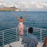 The highlight of the cruise is undoubtedly the sunset. As the boat approaches Diamond Head, the captain will pause to give everyone a chance to snap photos of the crater’s darkening silhouette. The glowing colors of the evening sky, combined with the silhouette of this volcanic landmark, create an unmistakable sense of place. Some reviewers mention a fleeting phenomenon called the “green flash,” which occurs right at sunset — a rare and celebrated sight for those lucky enough to catch it.